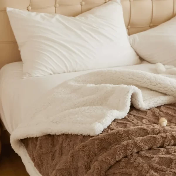 Set Lenjerie Super Pufoasa din Blanita Artificiala de Iepure, 6 Piese, 6.5kg – Crem – JoJo Home – PUF141088