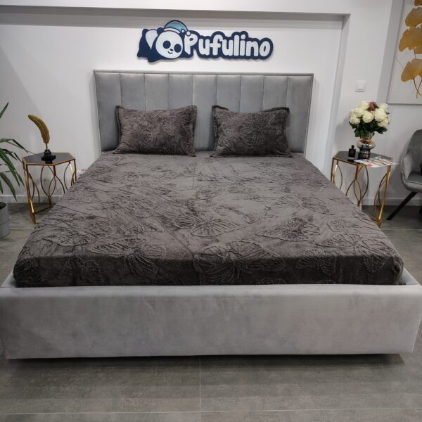Set Husa Cocolino cu Elastic Model Tricot cu Fluturi + 2 Fete de Perna, Pat 2 Persoane, East Comfort – Gri Inchis – PUF210608