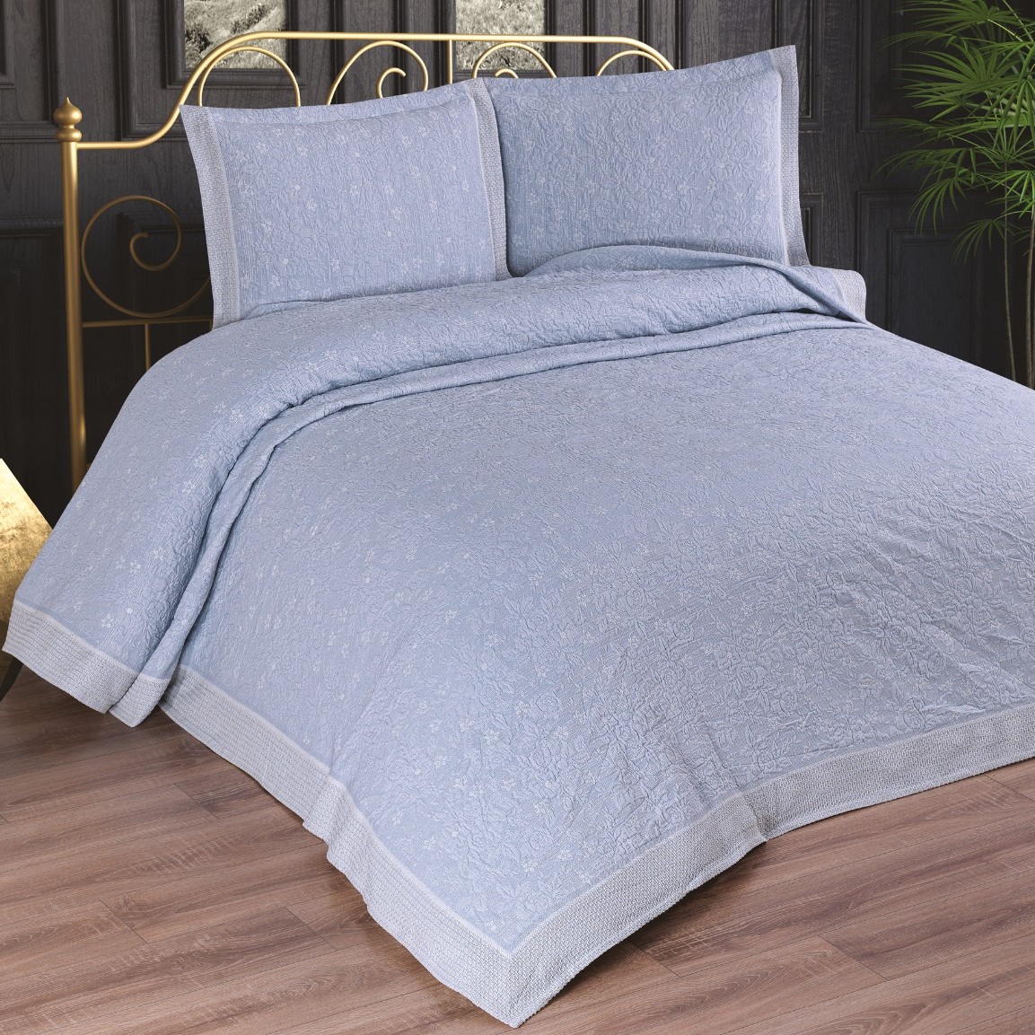 Cuvertura de Lux din Bumbac Jado Florent + 2 Fete de Perna, Tesatura Jacquard, 235x260cm – Bleu – PUF79008