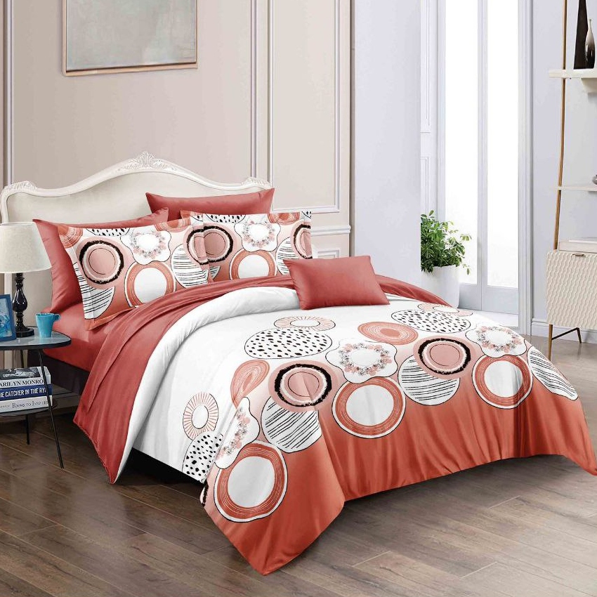 Lenjerie Bumbac Finet, 4 Piese, Pat 1 Persoana Portocalie cu Cercuri – Super Elegant Pucioasa – PUF144540