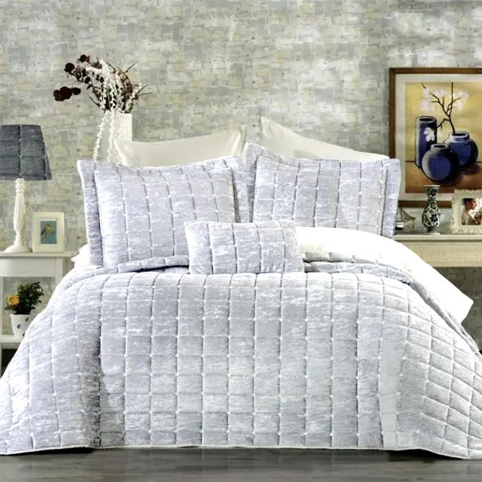 Cuvertura de pat + 3 fete de perne confectionata dintr-un amestec de bumbac si un material catifelat extrem de placut la atingere. Cuverturile de pat brodate vor da cu siguranta o nota eleganta dormitorului tau si se potrivesc indiferent de sezon. Totodata, ele adauga un plus de unicitate dormitorului tau datorita broderiilor clasice. Broderiile acestui set (cuvertura de pat plus fete de perna) sunt realizate cu ajutorul celor mai noi tehnologii – garantat nu se decoloreaza daca se respecta instructiunile de intretinere. Setul vine ambalat in husa de plastic – poate fi folosita ca husa pentru depozitare.