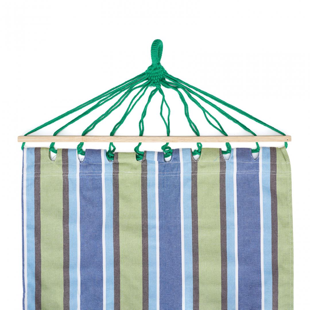 Hamac din bumbac si poliester, prevazut cu brate din lemn marca Heinner.
