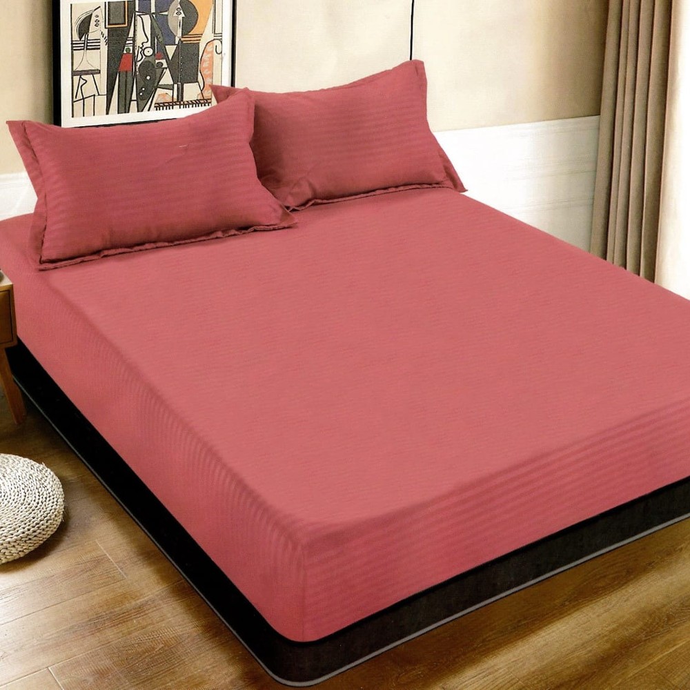 Husa de Pat cu Elastic din Bumbac + 2 Fete de Perna, Model Damasc, Pat 2 Persoane – PUF61036-12