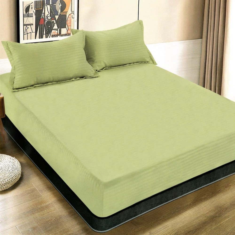 Husa de Pat cu Elastic din Bumbac + 2 Fete de Perna, Model Damasc, Pat 2 Persoane – PUF61041-16