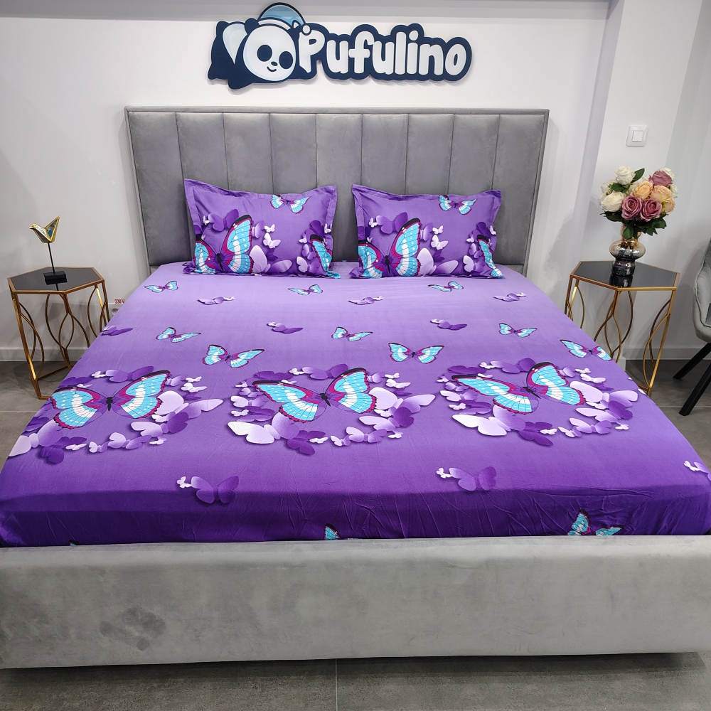 Husa de pat cu elastic din Bumbac Finet + 2 Fete de Perna, Pat 2 Persoane – Sky Home – PUF120082