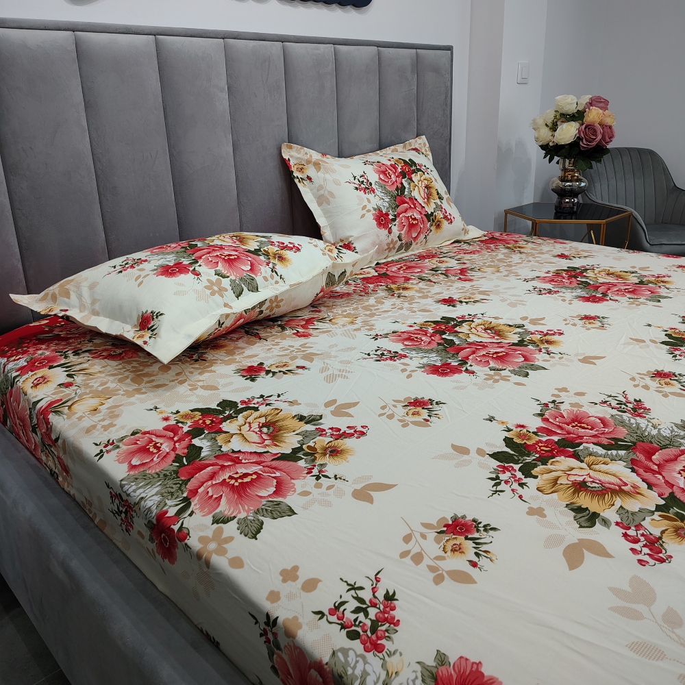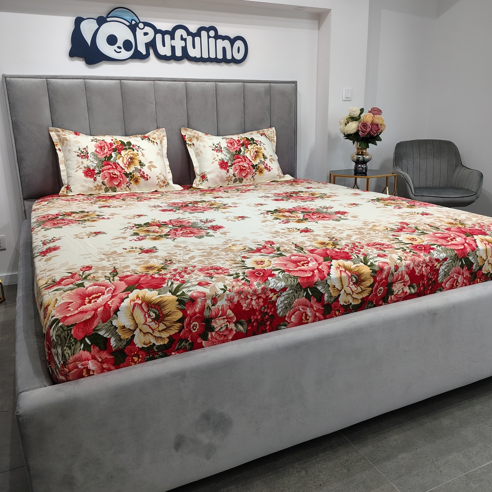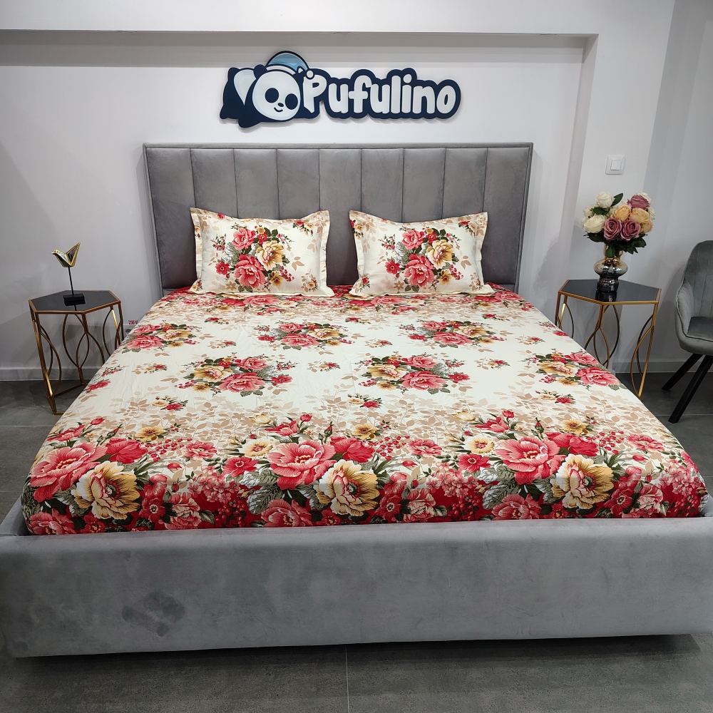 Husa de pat cu elastic din Bumbac Finet + 2 Fete de Perna, Pat 2 Persoane Red Roses – Sky Home – PUF24130