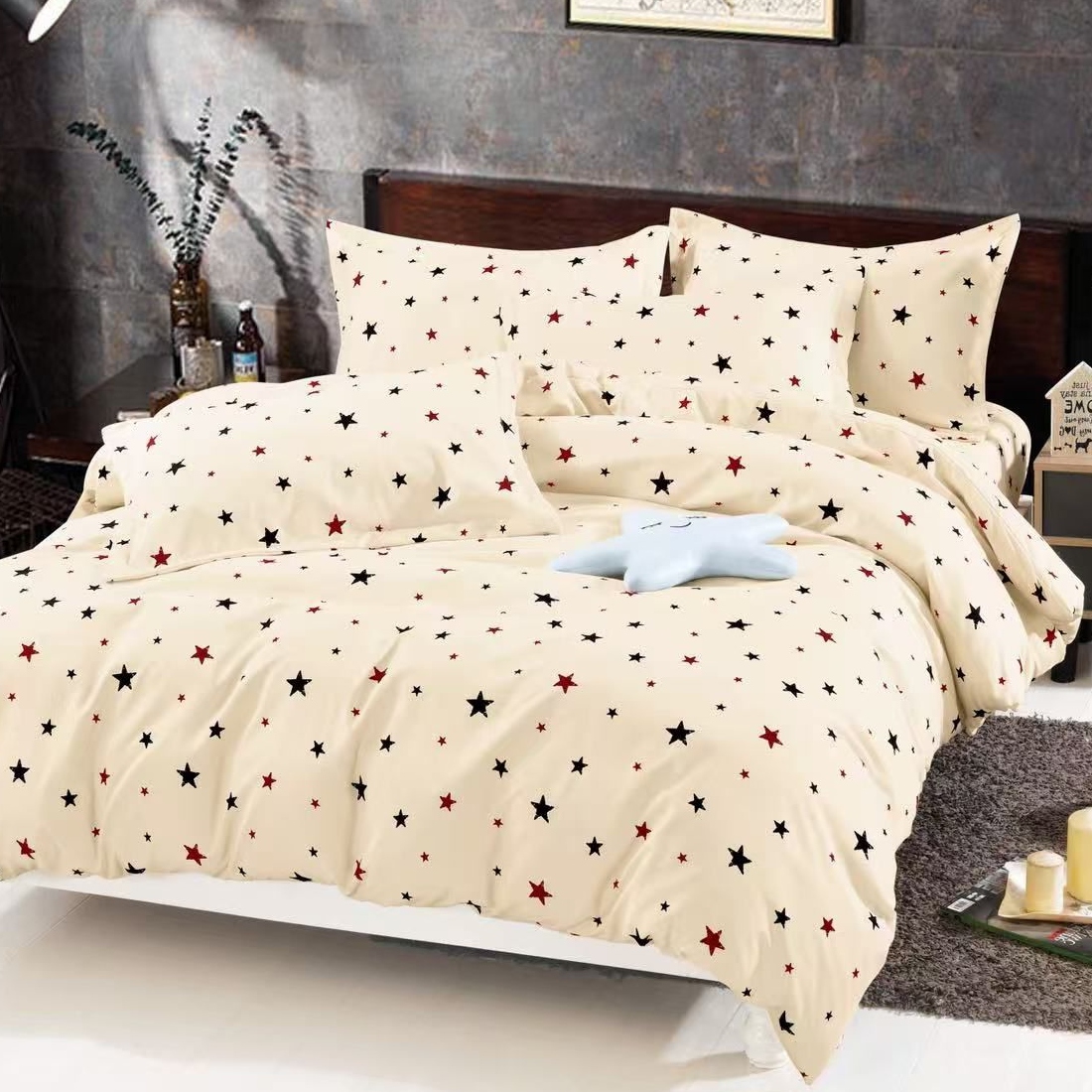 Lenjerie Bumbac Finet, 4 Piese, Pat 1 Persoana, Crem cu Stelute – Sky Home – PUF204002