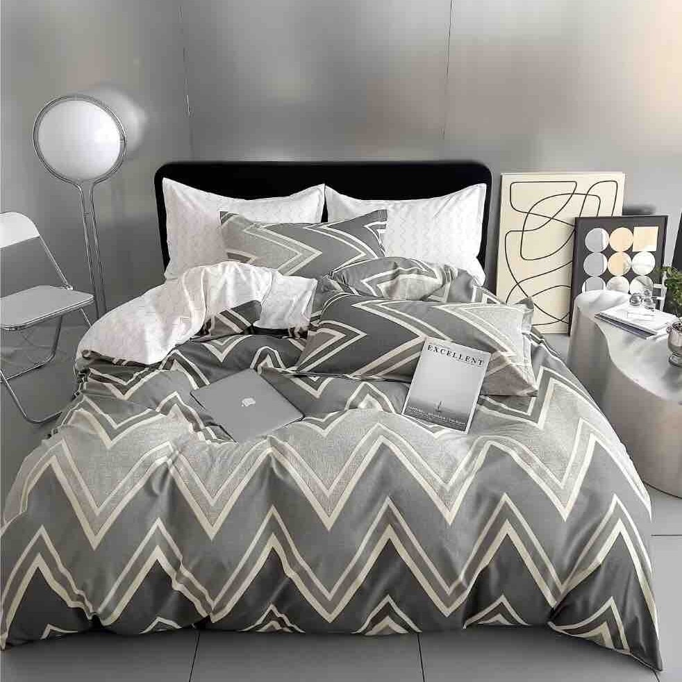 Lenjerie Bumbac Finet Superior, 4 Piese, Pat 1 Persoana, Grey Zig Zag – Jo Jo Design – PUF35917