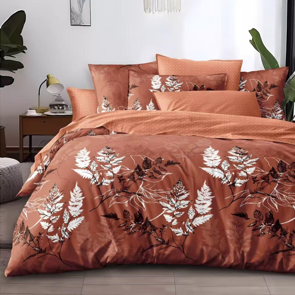 Lenjerie Bumbac Satinat, 4 Piese, Pat 2 Persoane, Brown Leafs – Sky Home – PUF115330