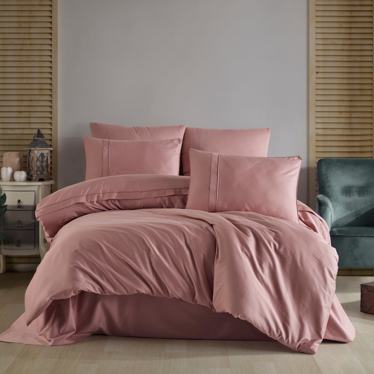 Lenjerie de Lux din Bumbac 100% Satin, Densitate 300TC, Pat 2 Persoane – Hobby Plain – Pudra – PUF142908