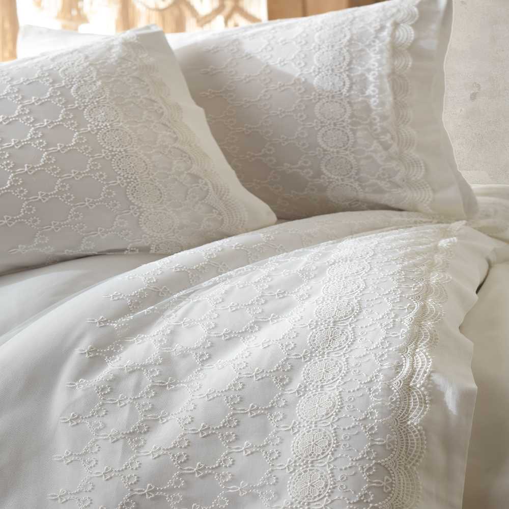 DANTELA Inci – crem Lenjerie de pat de Lux din Bumbac 100% Satin 200TC, Pat 2 persoane - Dantela Vita - Inci Crem Prețul inițial a fost: 1.049,99 lei.Prețul curent este: 949,99 lei.