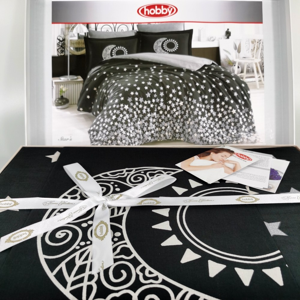 Lenjerie de pat din Bumbac 100% Poplin, 4 Piese, Pat 2 Persoane – Hobby – Stars Black