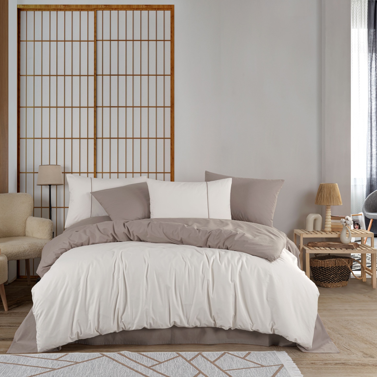 Lenjerie de Pat Hobby Poplin Diamond Uni, Bumbac 100%, 6 Piese, Pat 2 Persoane – Crem/Maro – PUF196881