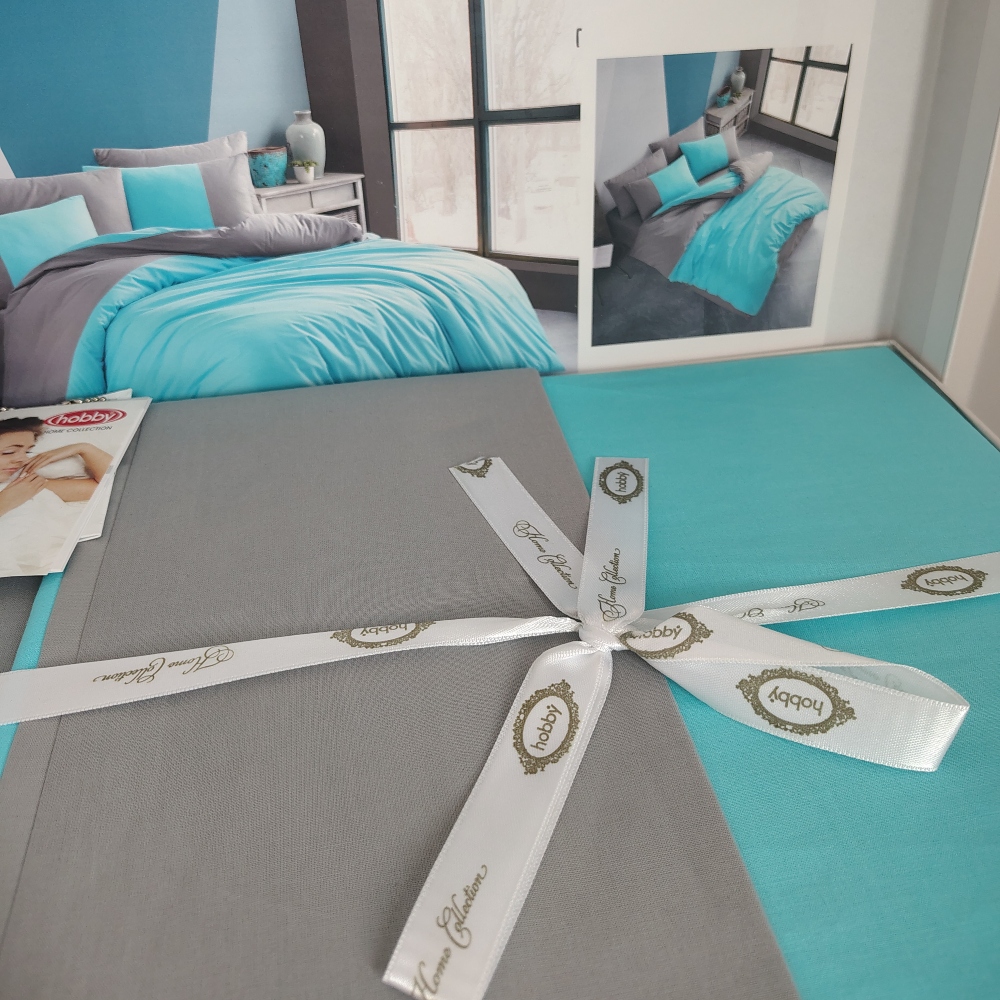 Lenjerie de Pat Hobby Poplin Diamond Uni, Bumbac 100%, 6 Piese, Pat 2 Persoane – Turcoaz – PUF65142