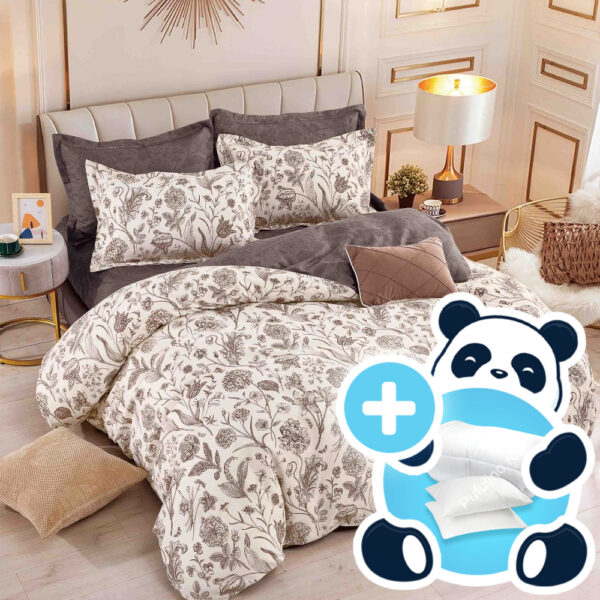 Set lenjerie compusa din 6 piese pentru pat dublu confectionata din bumbac finet de calitate superioara. Aceasta lenjerie premium este ideala pentru a da o nota eleganta dormitorului tau sau pentru a o folosi in cadrul unei pensiuni sau hotel si a-ti intampina oaspetii in cel mai elegant mod posibil.