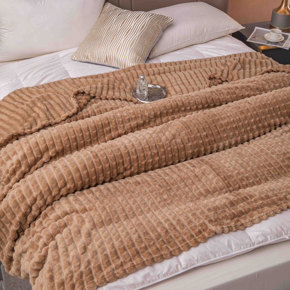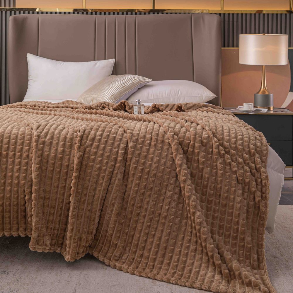 Patura Cocolino cu carouri, cu o textura foarte fina si catifelata. Patura este foarte practica, poate fi folosita atat pentru a amenaja patul, in dormitor, cat si pentru a acoperi canapeaua sau pentru a va incalzi in perioadele friguroase ale anului. Designul unic, cu dungi, si materialul in relief ii confera un aspect deosebit care cu siguranta va fi remarcat de oaspetii casei voastre.