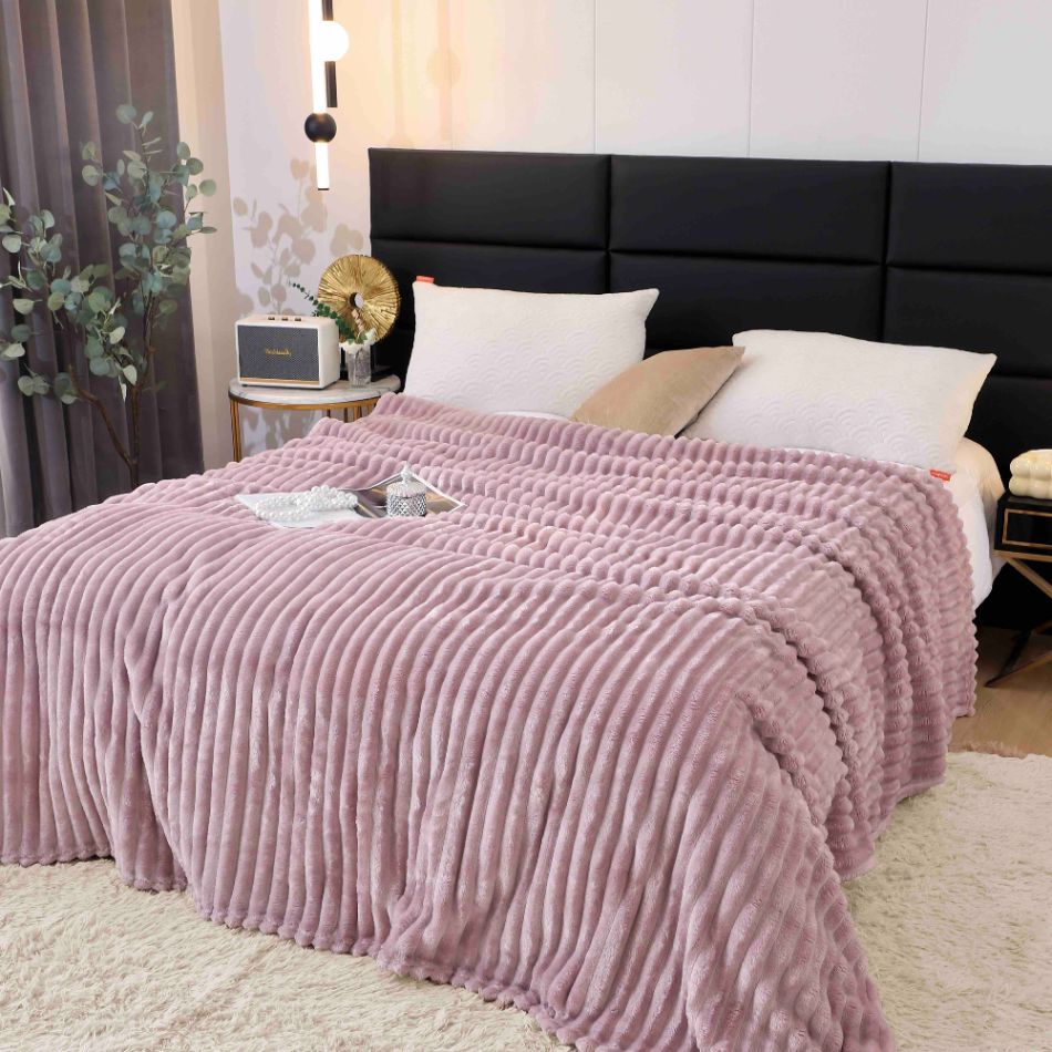 Patura Cocolino model uni, cu o textura foarte fina si catifelata. Patura este foarte practica, poate fi folosita atat pentru a amenaja patul, in dormitor, cat si pentru a acoperi canapeaua sau pentru a va incalzi in perioadele friguroase ale anului. Designul unic, cu dungi, si materialul in relief ii confera un aspect deosebit care cu siguranta va fi remarcat de oaspetii casei voastre.