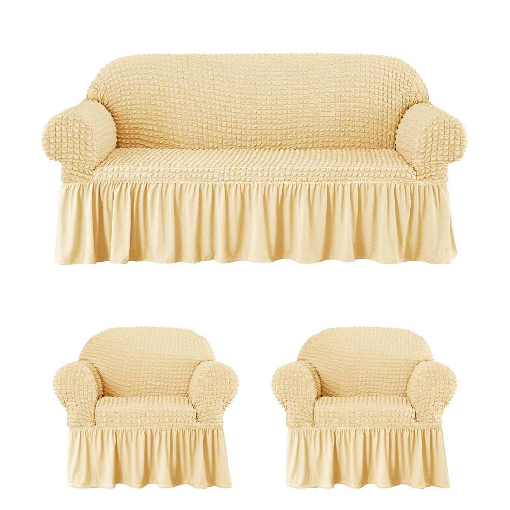 Set de huse pentru canapea si 2 fotolii tip 3.1.1. – pachetul include o husa pentru canapea de 3 locuri si doua huse pentru fotolii.