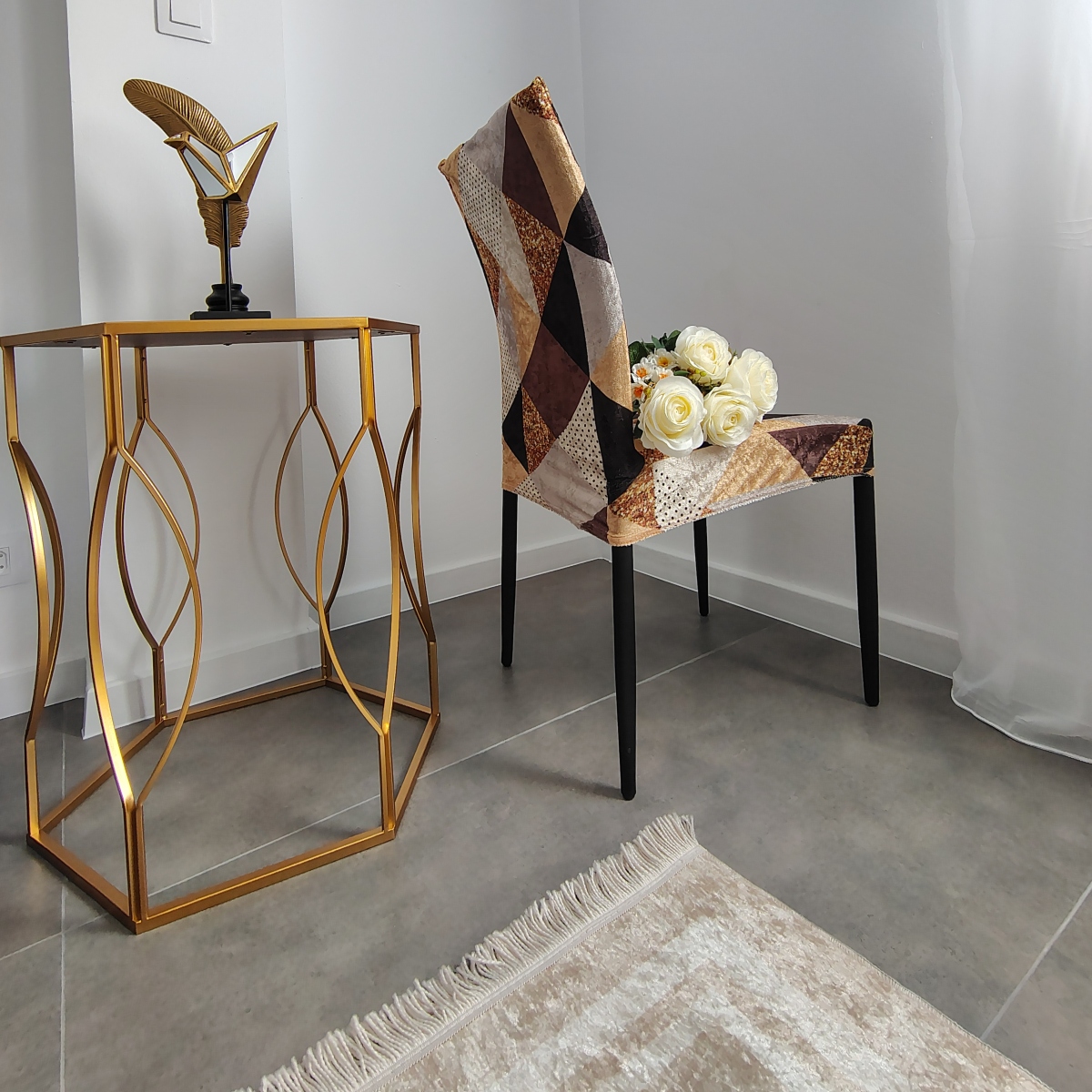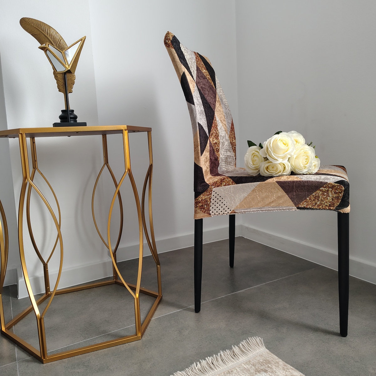 Set 6 Huse de Scaun Elastice Velvet, Cu Model, Marime Universala – PUF112083