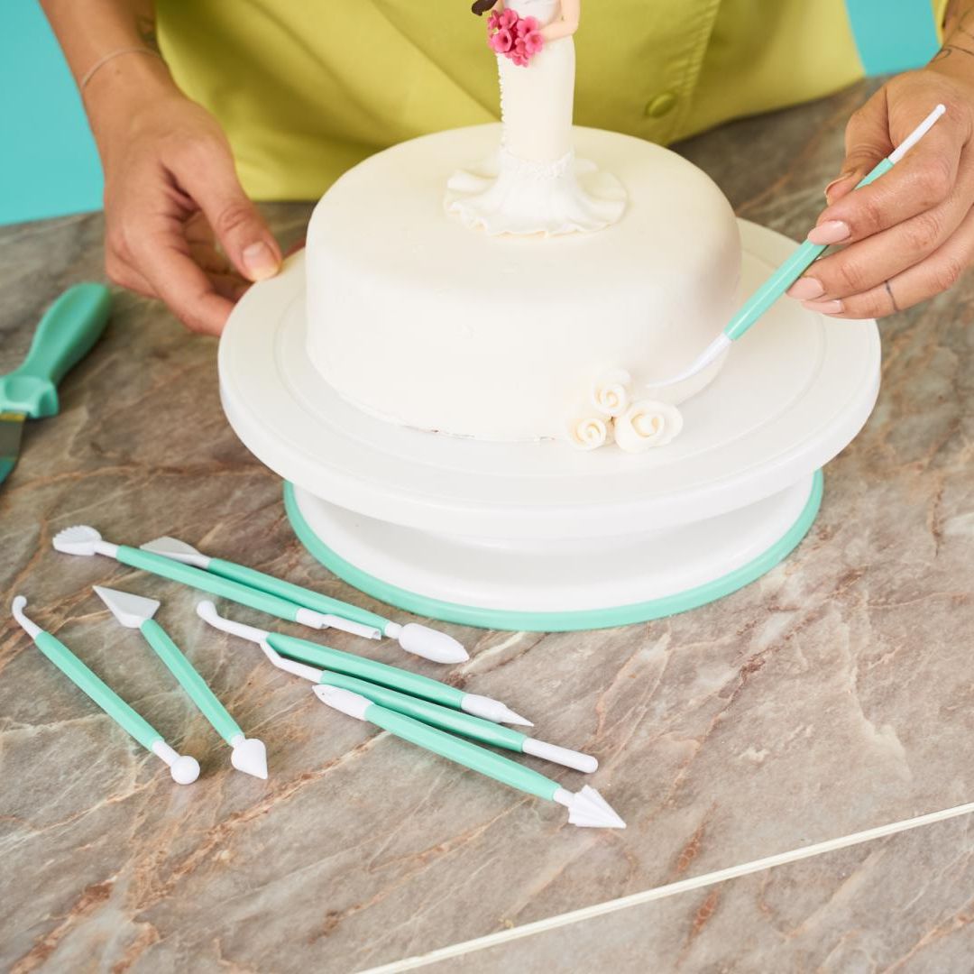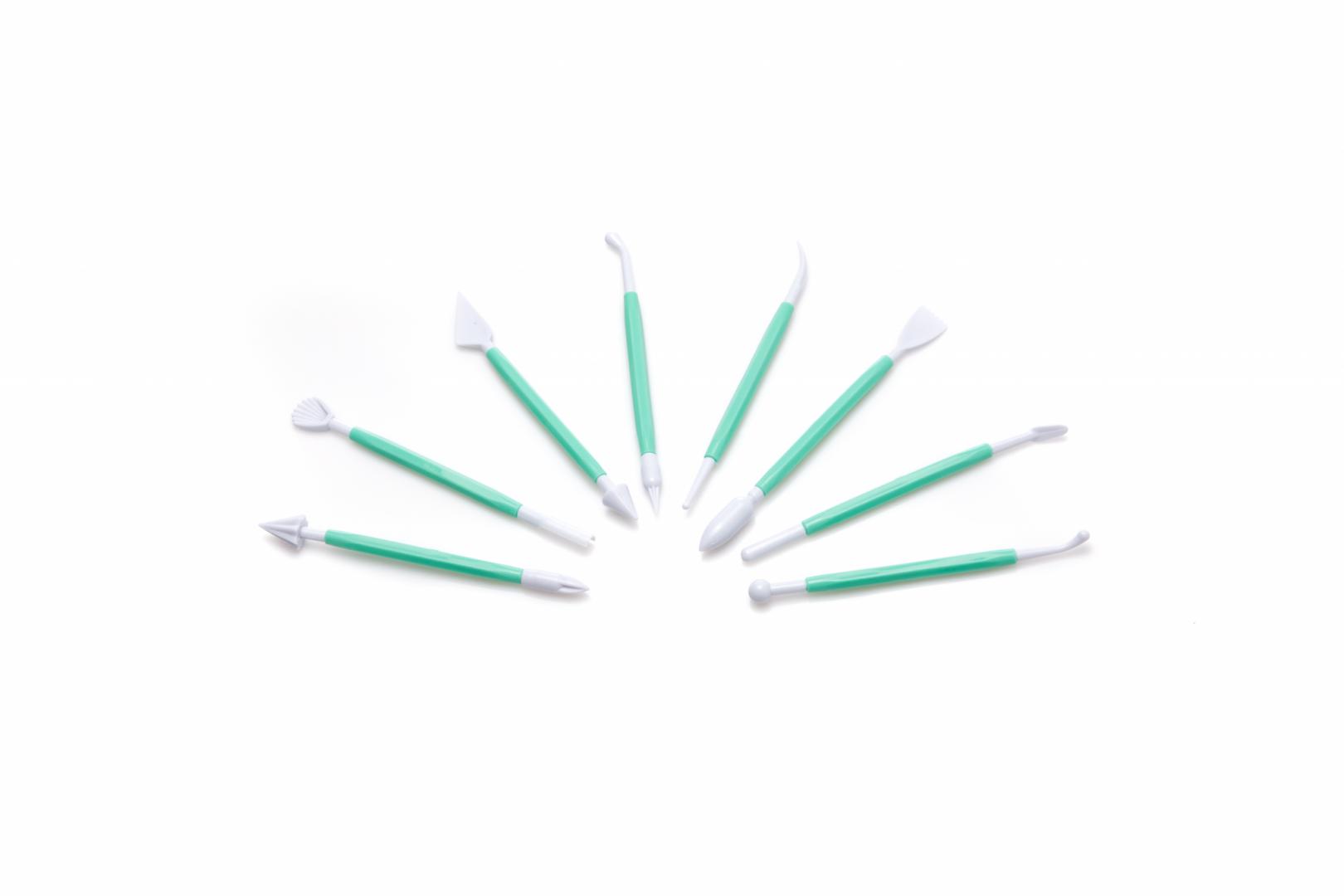 8 ustensile potrivite pentru ornarea glazurii din martipan, fondant, crema, aluat fiecare avand cate 2 capete detasabile, pentru a putea realiza cat mai multe combinatii de ornamente dorite