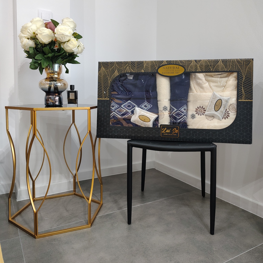 4 recenzii pentru Set Cadou 8 Piese: Halate de Baie + Prosoape din Bumbac 100%, Crem & Bleumarin – Luisa – PUF93889