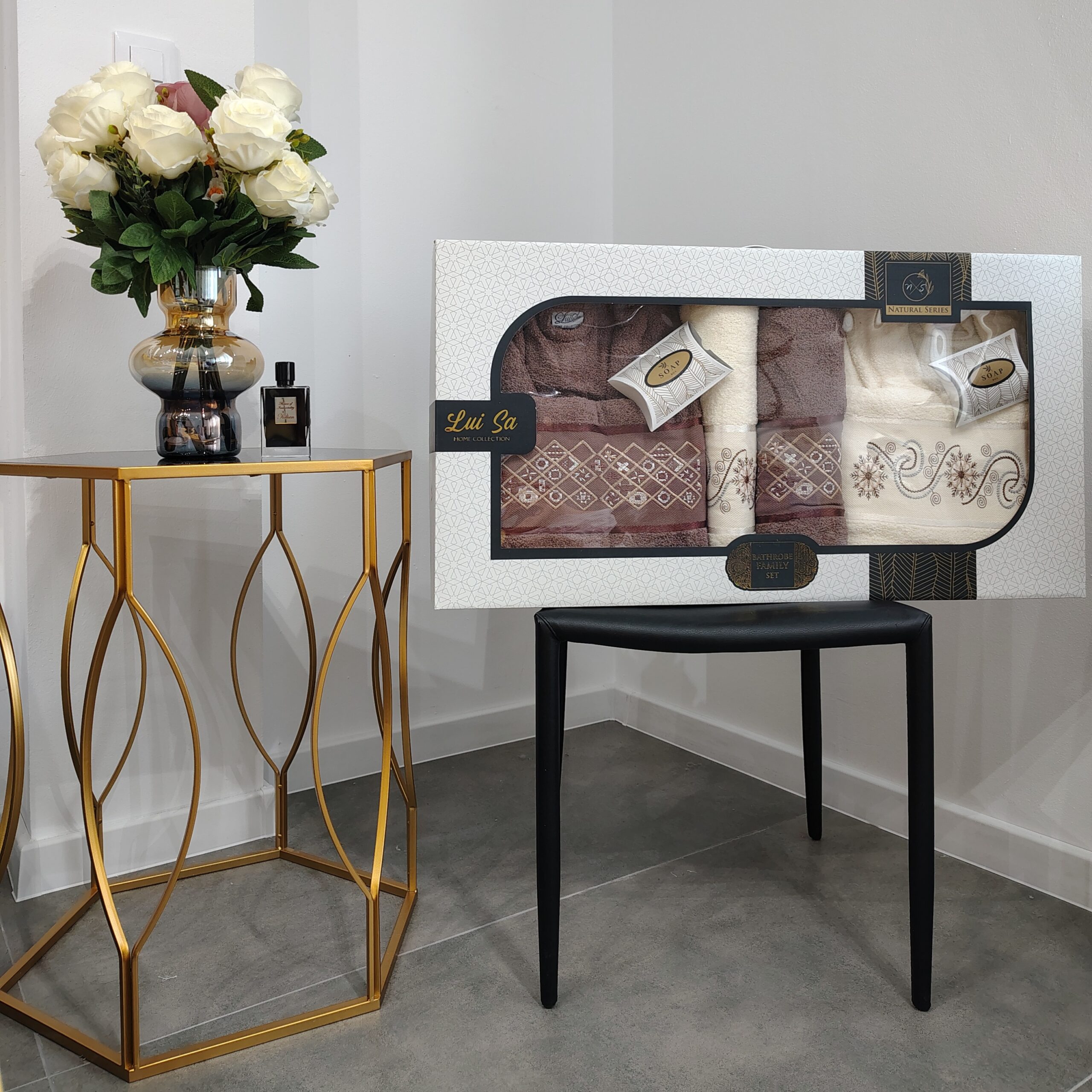 1 recenzie pentru Set Cadou 8 Piese: Halate de Baie + Prosoape din Bumbac 100%, Crem & Maro Deschis – Luisa – PUF93886