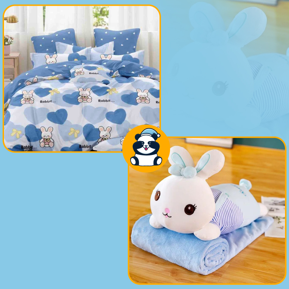 - Set cadou pentru copii Pufulino: Perna 40 x 35 cm+ Pătură 180 x 105 cm. Perna decorativa detine la interior umplutura de puf siliconizat antialergic si celuloza, iar patura Cocolino pufoasa este realizata din microfibra plusata.