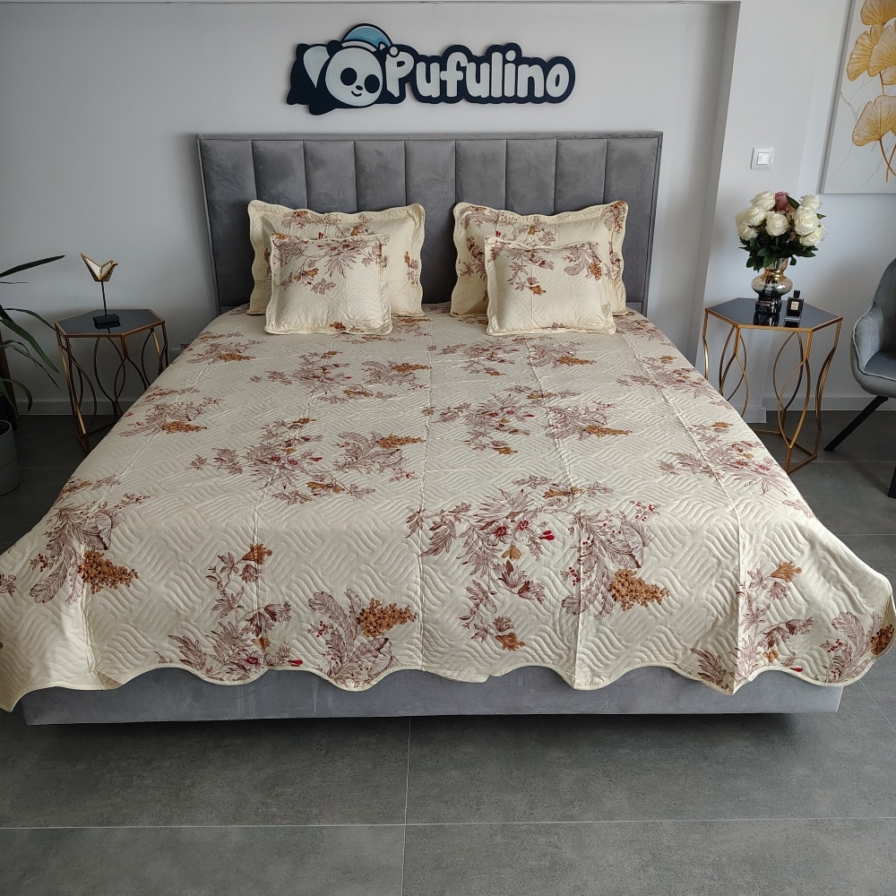 Cuvertura de pat + 4 fete de perne confectionate din bumbac. Cuverturile de pat sunt potrivite pentru orice anotimp. Totodata, ele adauga un plus de unicitate dormitorului tau prin imprimeul deosebit. Imprimeul acestui set (cuvertura pat plus fete de perna) este realizat cu cele mai noi tehnologii – garantat nu se decoloreaza daca se respecta instructiunile de intretinere. Setul vine ambalat in husa de plastic – poate fi folosita ca husa pentru depozitare.