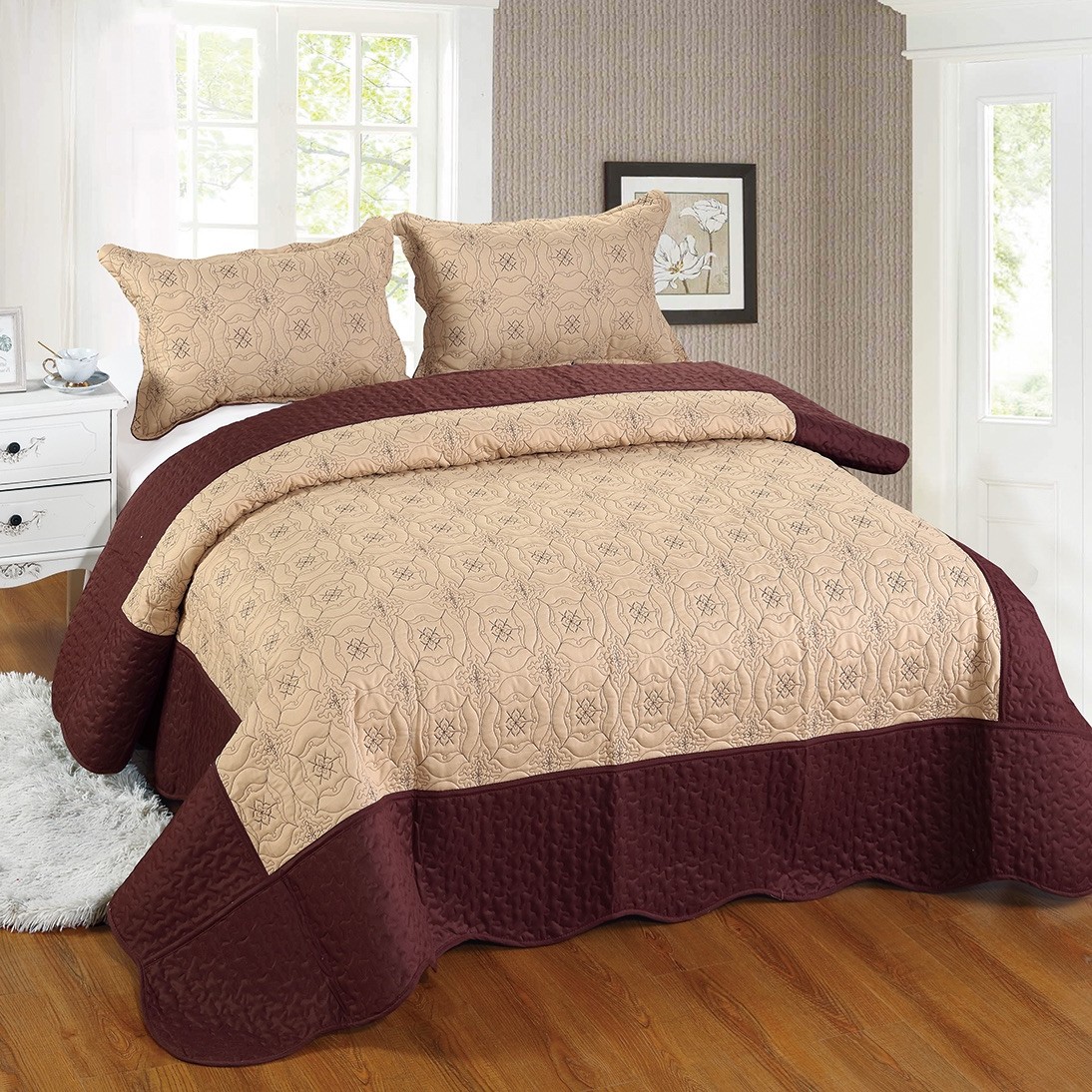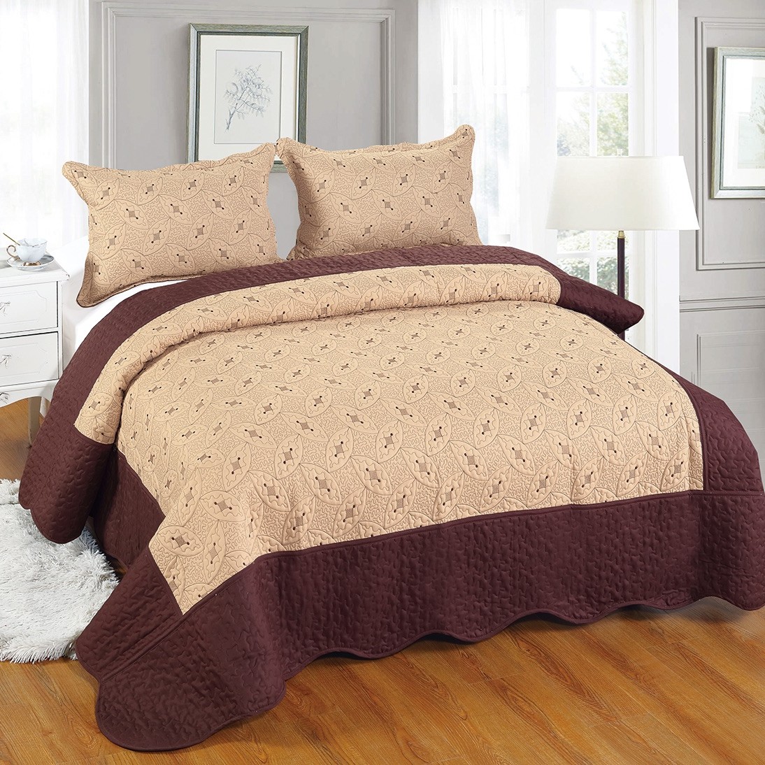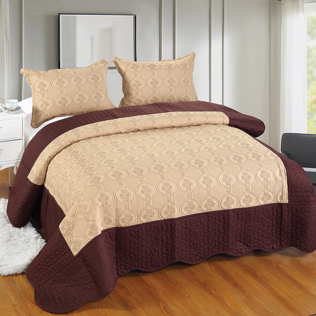 Set Cuvertura de Pat Crem & Maro Clasic, 3 Piese, Pat 2 Persoane, 230×250 Cm – Fashion Casa – PUF13040