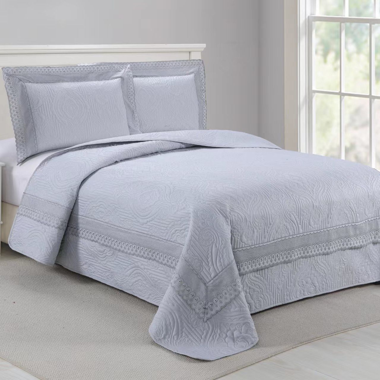Set Cuvertura de Pat Matlasata cu Broderie, 3 Piese, 220×240 Cm – Casa de Vis – Gri Deschis – PUF139220-13