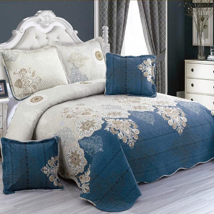 Cuvertura de pat + 2 fete de perne confectionate din bumbac. Cuverturile de pat sunt potrivite pentru orice anotimp. Totodata, ele adauga un plus de unicitate dormitorului tau prin imprimeul deosebit. Imprimeul acestui set (cuvertura pat plus fete de perna) este realizat cu cele mai noi tehnologii – garantat nu se decoloreaza daca se respecta instructiunile de intretinere. Setul vine ambalat in husa de plastic – poate fi folosita ca husa pentru depozitare.