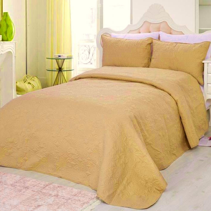 Cuvertura de pat + 2 fete de perne confectionate din microfibra periata de 80 gr/mp. Cuvertura este matlasata cu vatelina siliconizata de 100 gr/mp . Cuverturile de pat uni din microfibra periata sunt potrivite pentru orice anotimp. Totodata, ele adauga un plus de unicitate dormitorului tau. Intensitatea culorii nu se decoloreaza daca se respecta instructiunile de intretinere. Setul vine ambalat in husa de plastic – poate fi folosita ca husa pentru depozitare.