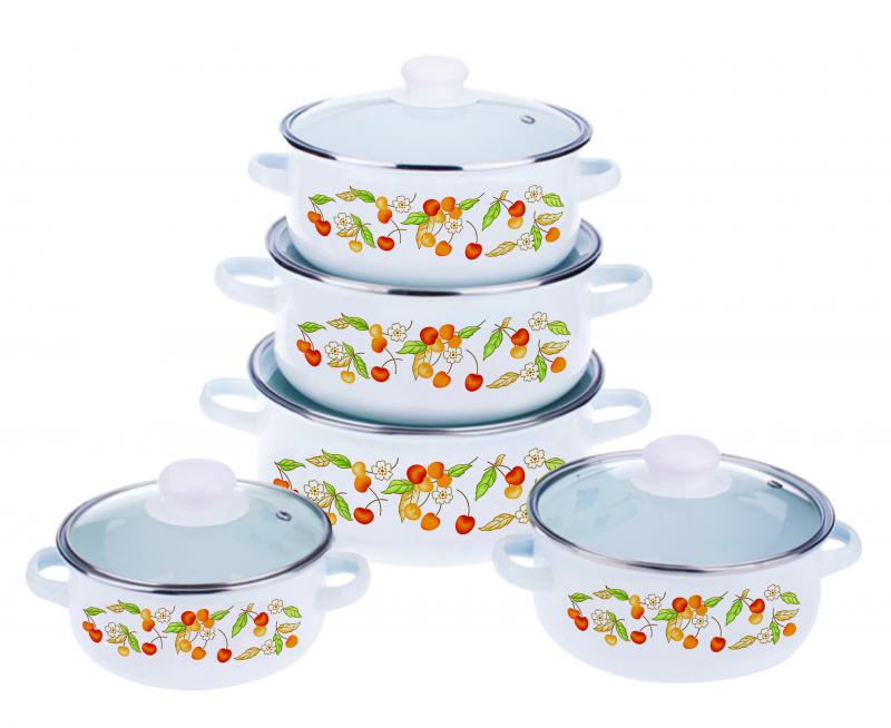 Set de Gatit din Otel Emailat cu Imprimeu, 10 Piese, Cereiza – Vanora Home – VN-E-C533