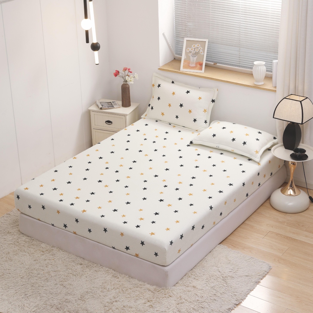 Set Husa de Pat Cocolino cu Elastic + 2 Fete Perna, Pat 2 Persoane – Small Stars – East Comfort – PUF206482