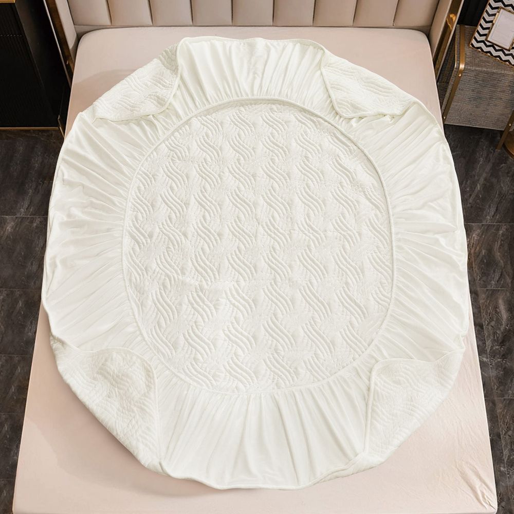 Husa de pat matlasata groasa confectionata dintr-un material de tip catifea, tesatura avand aspect moale si pufos. Husa beneficiaza de sistem de prindere inteligent, cu elastic, ce ii permite sa aiba o pozitie fixa pe saltea indiferent de moment.