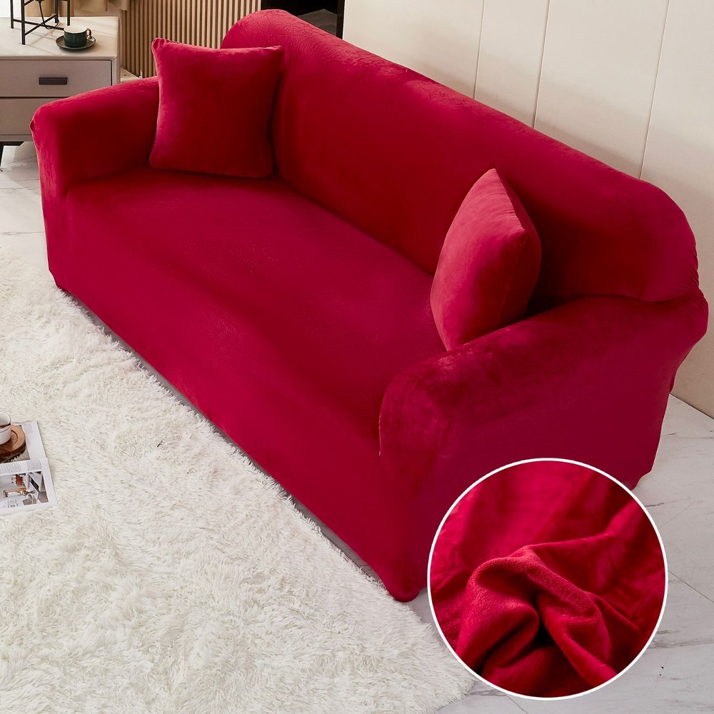 Set Husa Elastica din Catifea pentru Canapea 2 Locuri + Fata de Perna – Grena – PUF73206