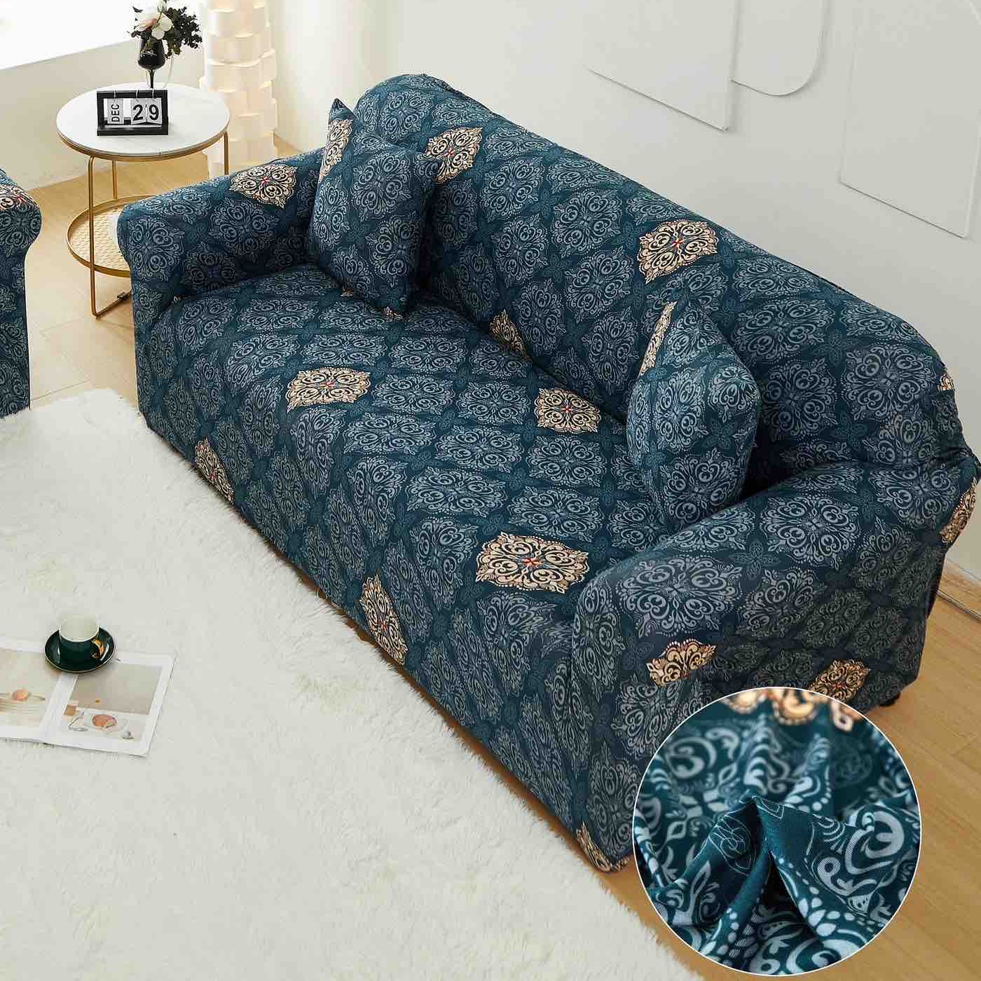 Set Husa Elastica pentru Canapea 2 Locuri + Fata de Perna – Turquoise Ornaments – PUF97301-228