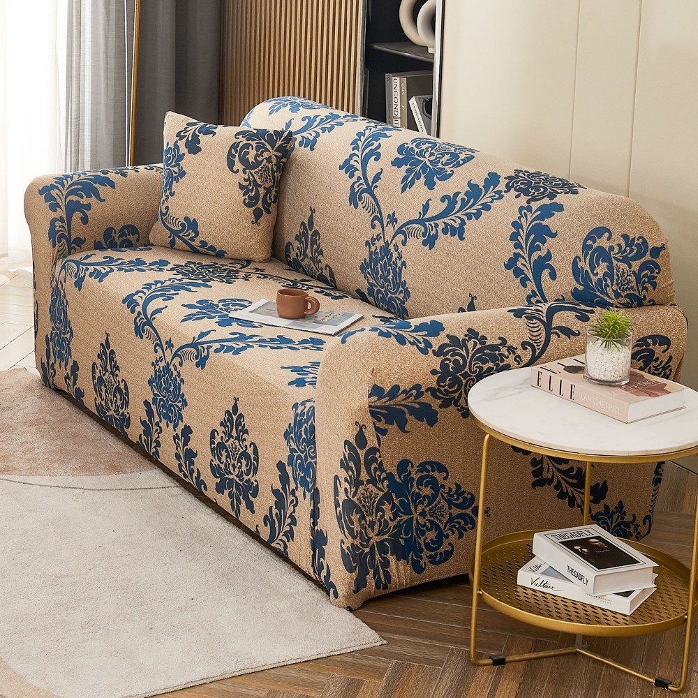 husa canapea cu frunze albastre Set Husa Elastica pentru Canapea 3 Locuri + Fata de Perna - JoJo Home - PUF40027-305 Prețul inițial a fost: 159,99 lei.Prețul curent este: 99,99 lei.