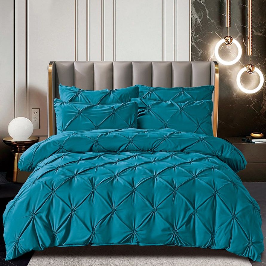 Set Lenjerie Brodata Uni, Model cu Pliuri, Bumbac Finet, Cearceaf cu elastic, 6 Piese, Pat 2 Persoane – Albastru Royal – 175217*