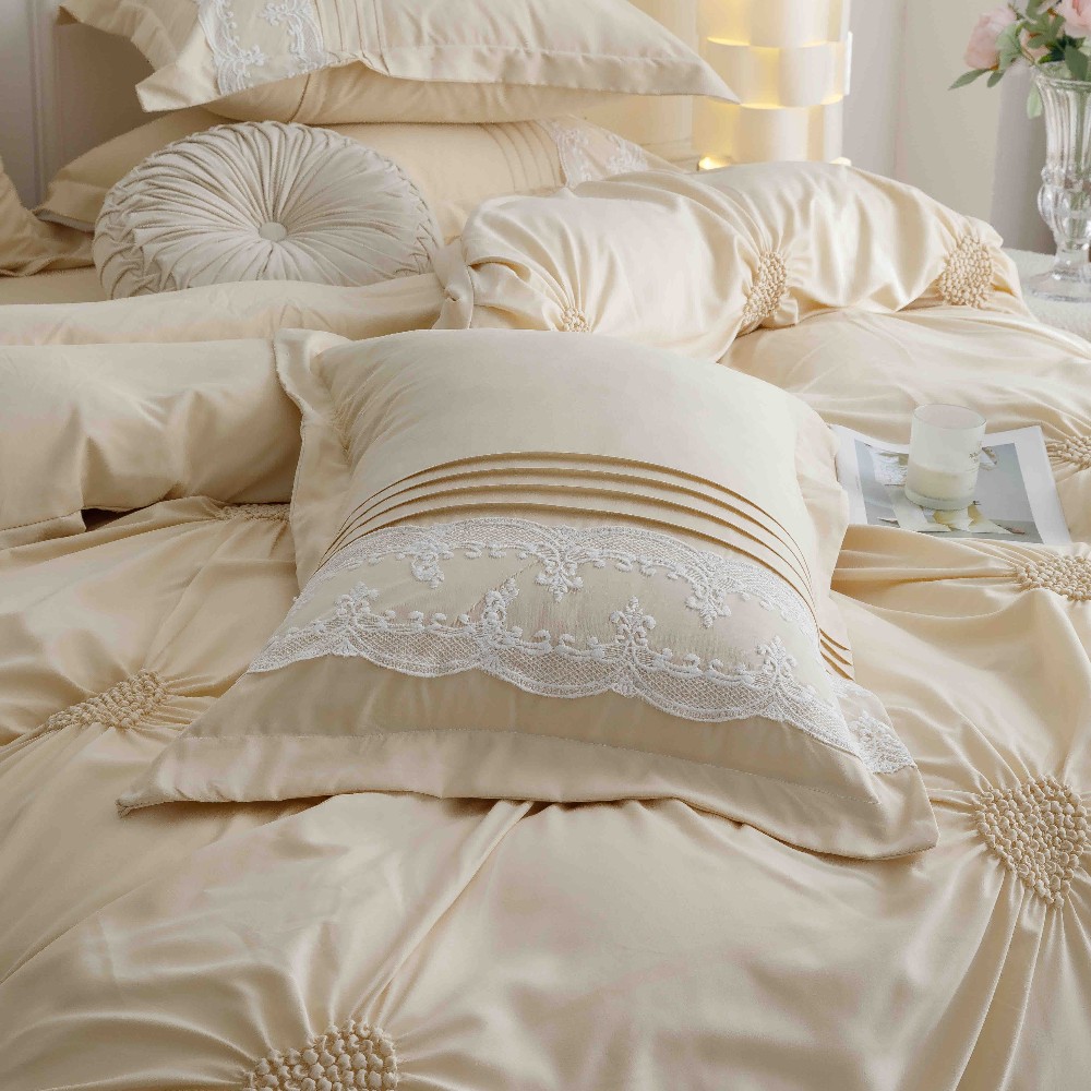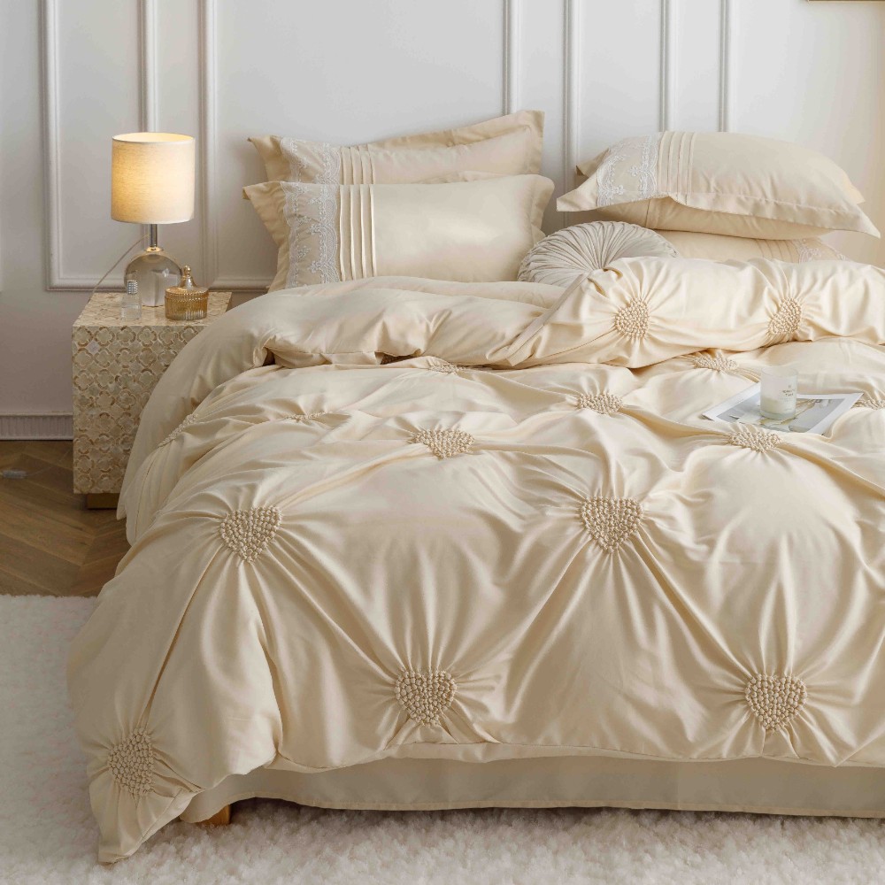 1 recenzie pentru Set Lenjerie de Pat Brodata, Pliuri & Inimioare, Bumbac Soft Touch, 6 Piese, Pat Dublu – Crem – PUF91043
