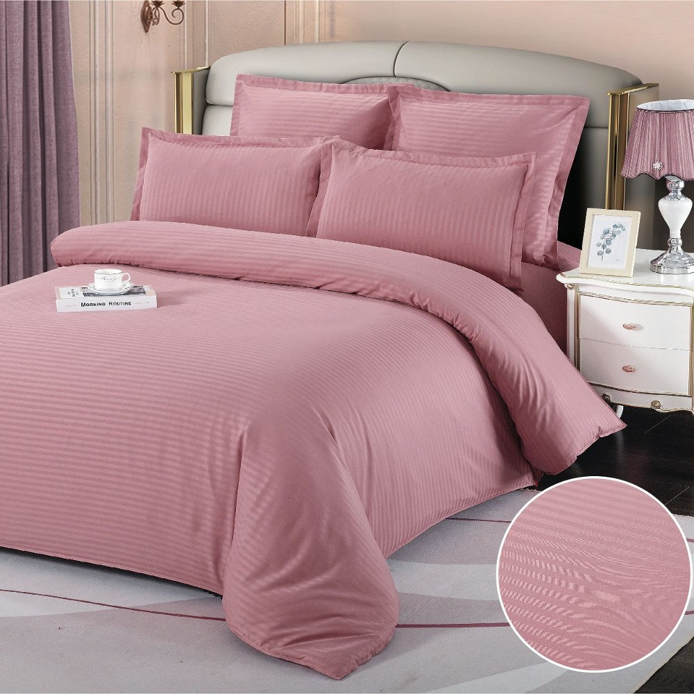 Set Lenjerie de Pat Deluxe, Model Damasc, 6 Piese, Pat Dublu – East Comfort – Roz Inchis – PUF63401-09