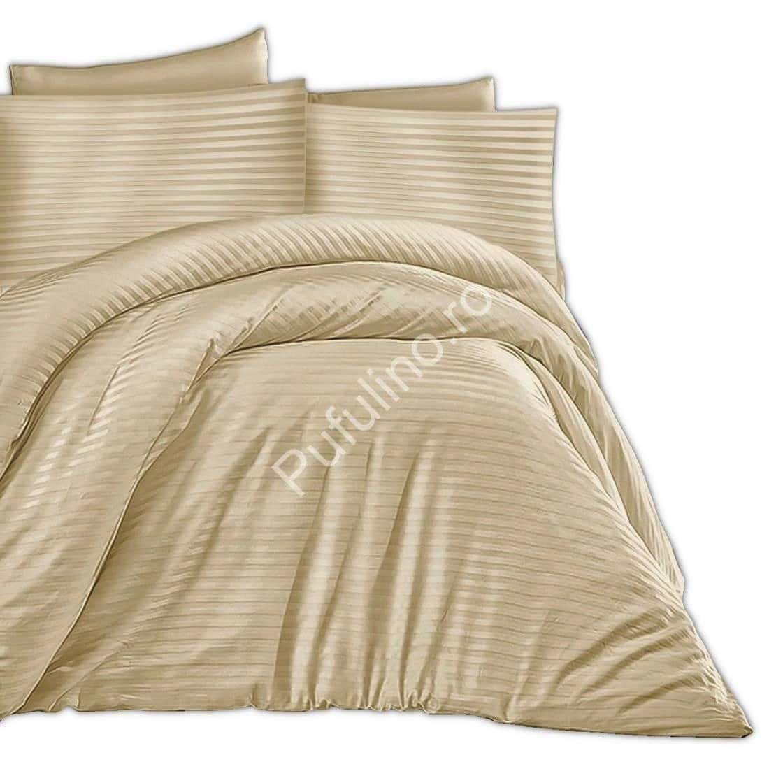 Lenjerie pentru pat dublu de 2 persoane confectionata din bumbac 100% damasc. Lenjeriile din damasc sunt folosite in special in industria hoteliera, oferind o rezistenta sporita in timp dar si confortul deosebit pentru un somn placut. Aceste lenjerii sunt confectionate dintr-un damasc fin, satinat, 100% mercerizat si sanforizat. Au un aspect lucios, ceea ce le confera eleganta, un grad ridicat de delicatete la atingere precum si rezistenta la folosire si spalari repetate.