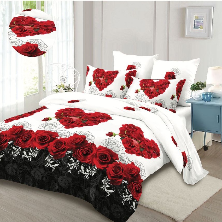Set Lenjerie de Pat din Finet, Cearceaf cu Elastic, 6 Piese, Pat 2 Persoane Big Roses – Sky Home – PUF171005