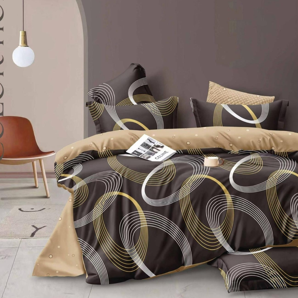 Set Lenjerie de Pat din Finet cu 2 Fete, 6 Piese, Pat 2 Persoane, Abstract Brown – East Comfort – PUF130268