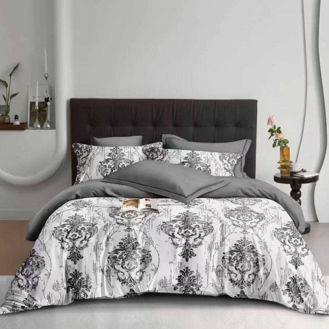Set Lenjerie de Pat din Finet cu 2 Fete, 6 Piese, Pat 2 Persoane, Grey Ornaments – East Comfort – PUF159615