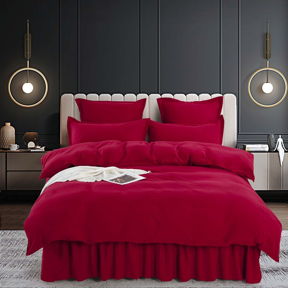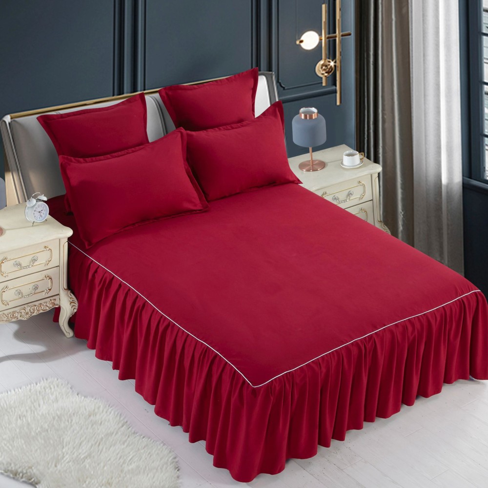 Set Lenjerie de Pat din Finet cu Volanase, Model Uni, 6 Piese, Pat 2 Persoane – Grena – JoJo Home – PUF58649