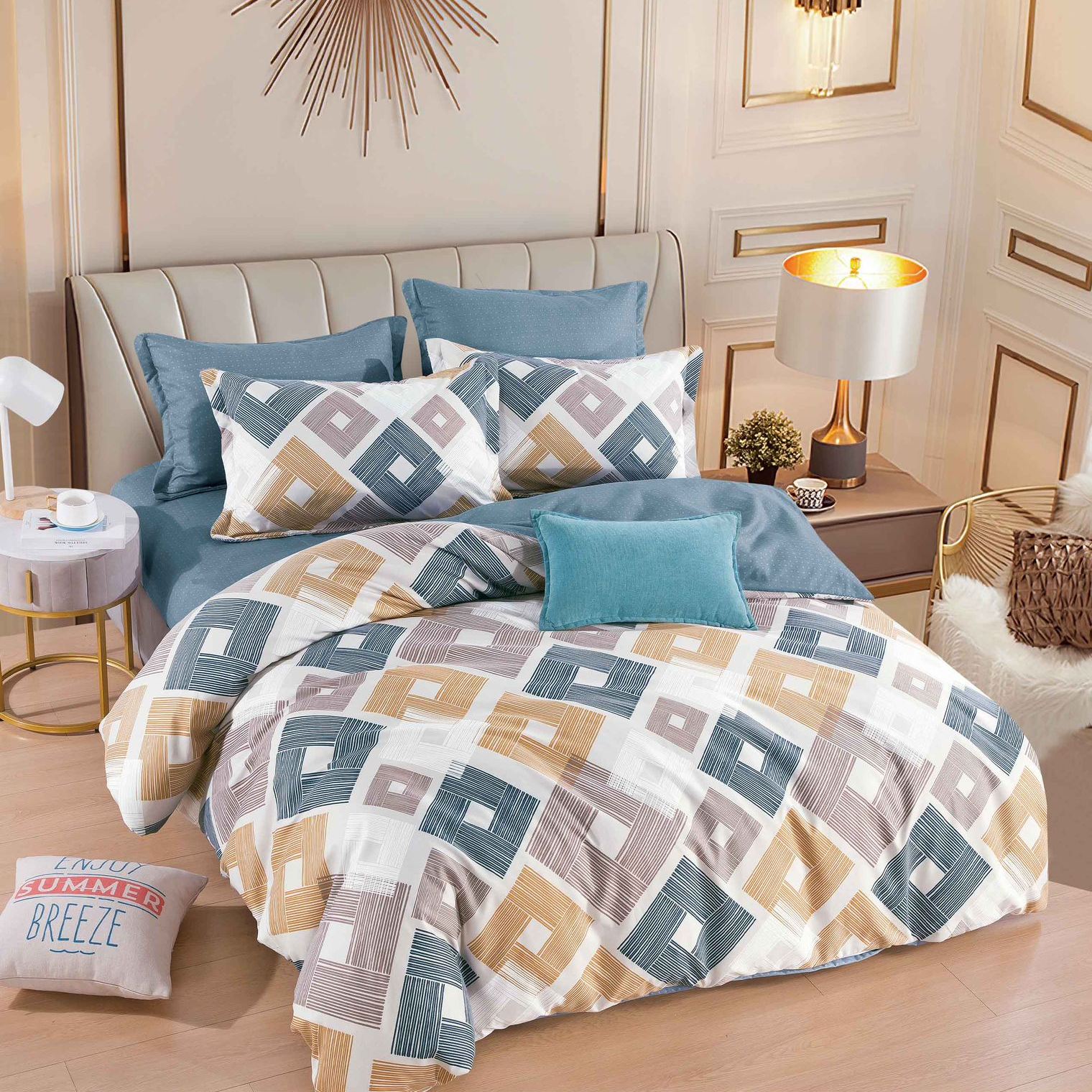 Set Lenjerie de pat din Finet Gros, Cearceaf cu elastic, Blue & Brown Diamonds, 6 Piese, Pat 2 Persoane – Jo Jo Design – PUF119126
