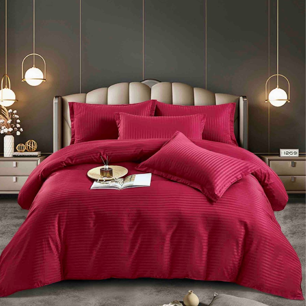 Set Lenjerie de Pat Model Damasc, Cearceaf cu Elastic, 6 Piese, Pat 2 Persoane – Grena – PUF142422