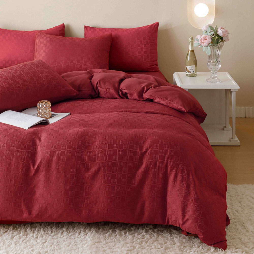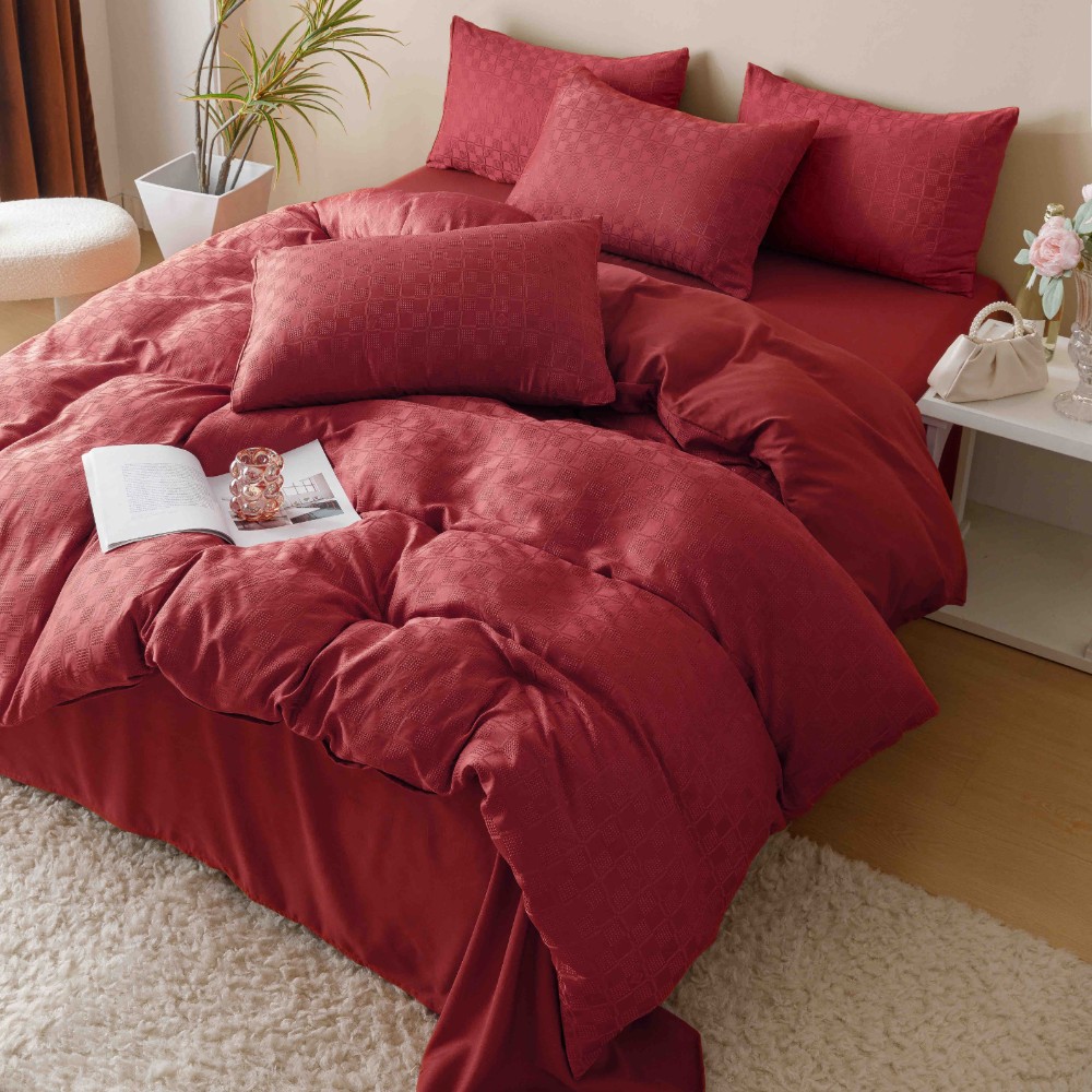 Set lenjerie model jacquard compusa din 6 piese, pentru pat dublu, confectionata din bumbac 100% de calitate superioara. Aceasta lenjerie premium este ideala pentru a da o nota eleganta dormitorului tau sau pentru a o folosi in cadrul unei pensiuni sau hotel si a-ti intampina oaspetii in cel mai elegant mod posibil.