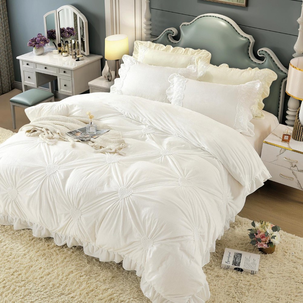 Alege noile lenjerii din catifea intr-o varietate de 13 nuante, compuse din 4 piese. Un set de lenjerie din catifea cu broderie este alcatuit din cearceaf de pat mare si elegant, plic pentru pilota prevazut cu o textura in relief extrem de catifelata, cat si 2 fete de perna pentru a-ti oferi tot confortul necesar in timpul somnului.